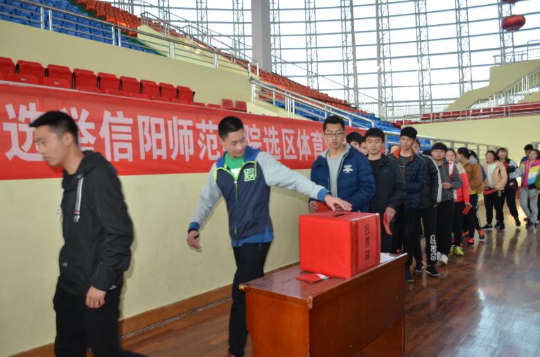 2月24日下午,浉河区第五届人大代表选举信阳师范公司选区365英国上市公司投票站在体育馆主馆召开投票选举。