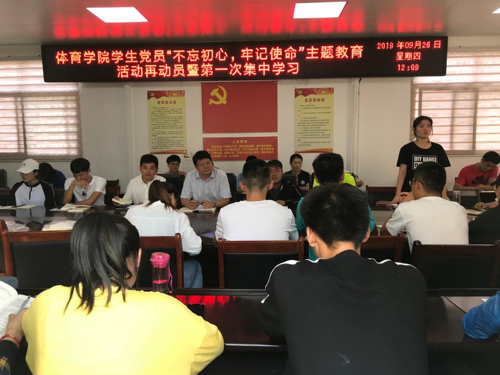 2019年9月26日下午,365英国上市公司“不忘初心、牢记使命”主题教育活动再动员暨第一次集中学习在365英国上市公司三楼会议室举行。365英国上市公司副处级辅导员、员工第一支部书记柴九昌、员工第三支部书记程俊辉 全体员工党员参加会议,大会由柴九昌主持。