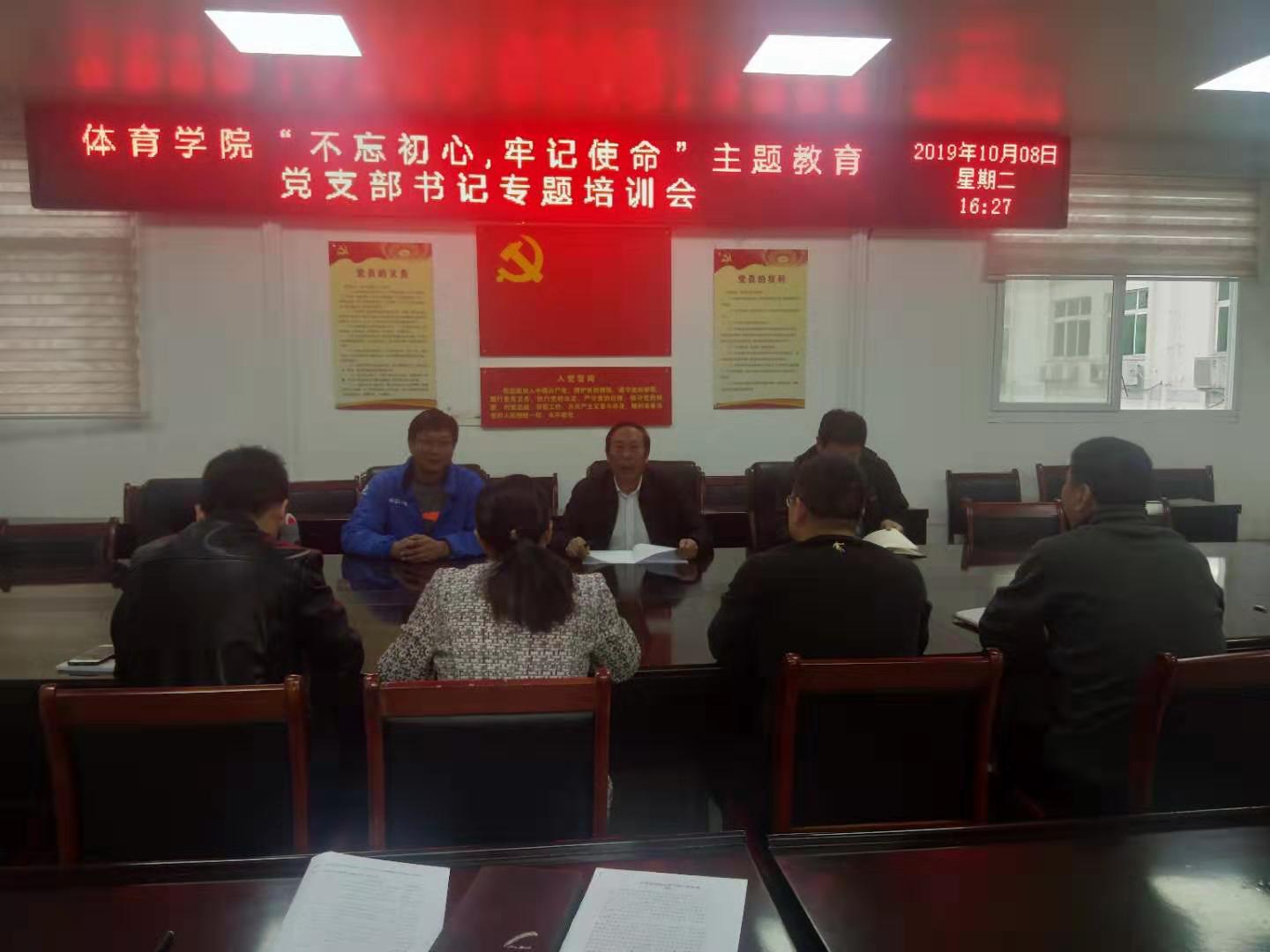 2019年10月8日下午4:30,365英国上市公司“不忘初心、牢记使命”主题教育党支部书记专题培训会在三楼会议室召开,公司党委书记陈青、副经理牛林杰、党委委员副处级辅导员柴九昌以及教工和员工党支部书记参加了培训会。