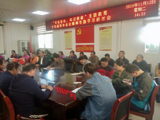 党委书记陈青要求,各支部要迅速组织开展传达学习活动,宣传好、贯彻好十九届四中全会精神,结合“不忘初心、牢记使命”主题教育,在自身学习领会的基础上,充分发挥表率作用,先学一步,学深一层,在学深吃透会议精神上下功夫。要坚定不移以习近平新时代中国特色社会主义思想为指导,把树牢“四个意识”、坚定“四个自信”、做到“两个维护”体现到具体行动上,扎扎实实做好各项工作。