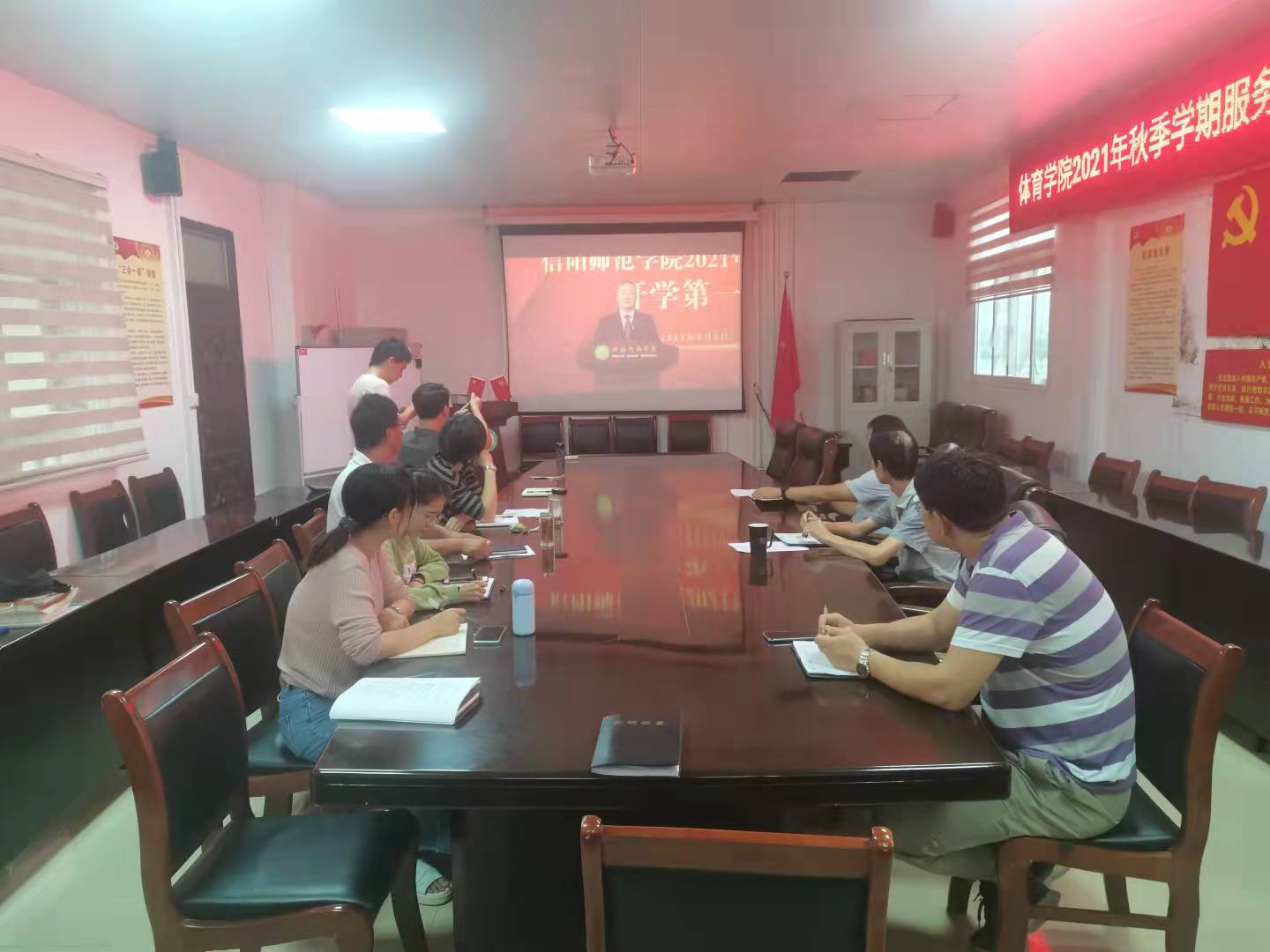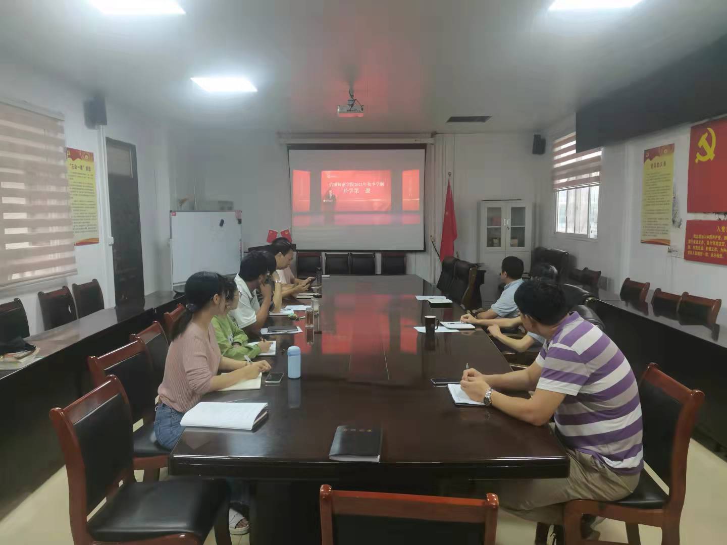 9月6日上午8:00-10:00,公司领导班子、全体辅导员及部分教师在365英国上市公司三楼集体收看“开学第一课”,同时,根据院工作部署,全体师生自行观看了“开学第一课”。