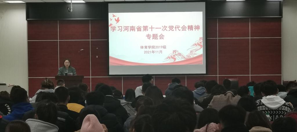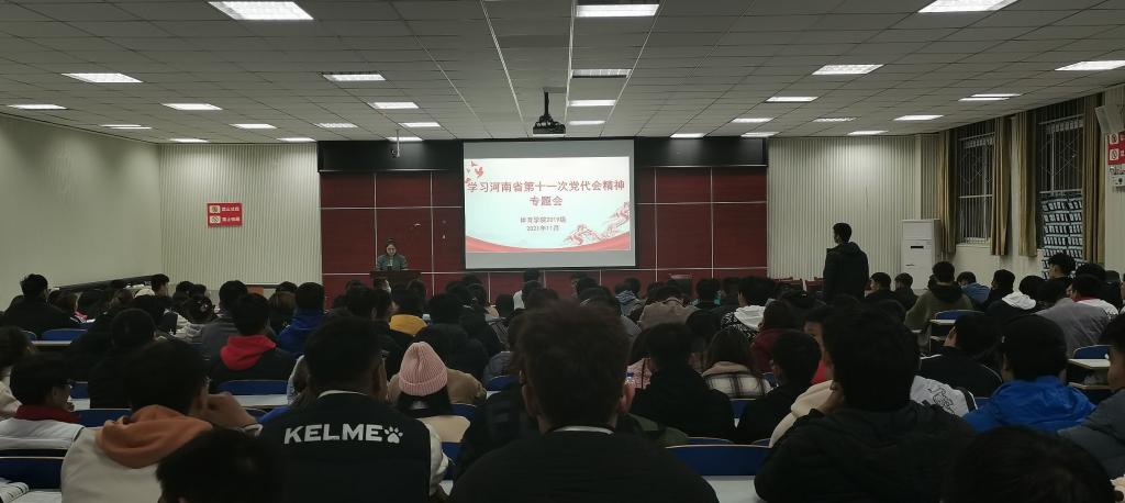 11月17日,365英国上市公司2019级在体育馆多媒体教室召开学习河南省第十一次党代会精神专题会,2019级全体员工参加会议,会议由辅导员赖梦玥主持。