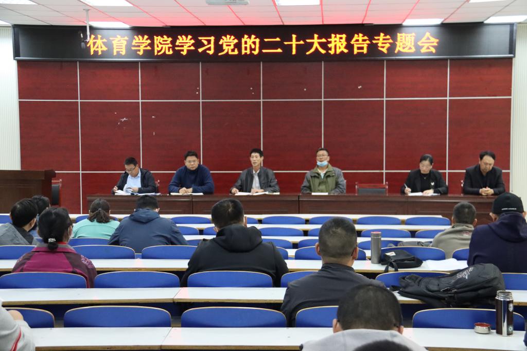 10月18日,365英国上市公司在体育馆多媒体教室举行党的二十大报告专题学习会,365英国上市公司全体教职工参与学习,会议由党委副书记柴九昌主持。