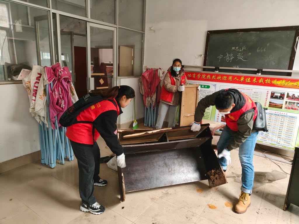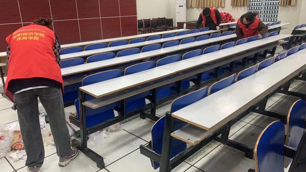 成员们身穿志愿服,经过组长的分工之后,讯速的开展各自的工作,并对一些卫生死角进行彻底的清扫。三个小组成员分头行动开展合作,进一步提高效率。志愿服务活动持续了九十分钟。在清扫过程中,成员们默契配合,搬重物、抬桌凳、去扬尘。经过了一个半小时的志愿服务活动,成员们都得到了相应的锻炼。