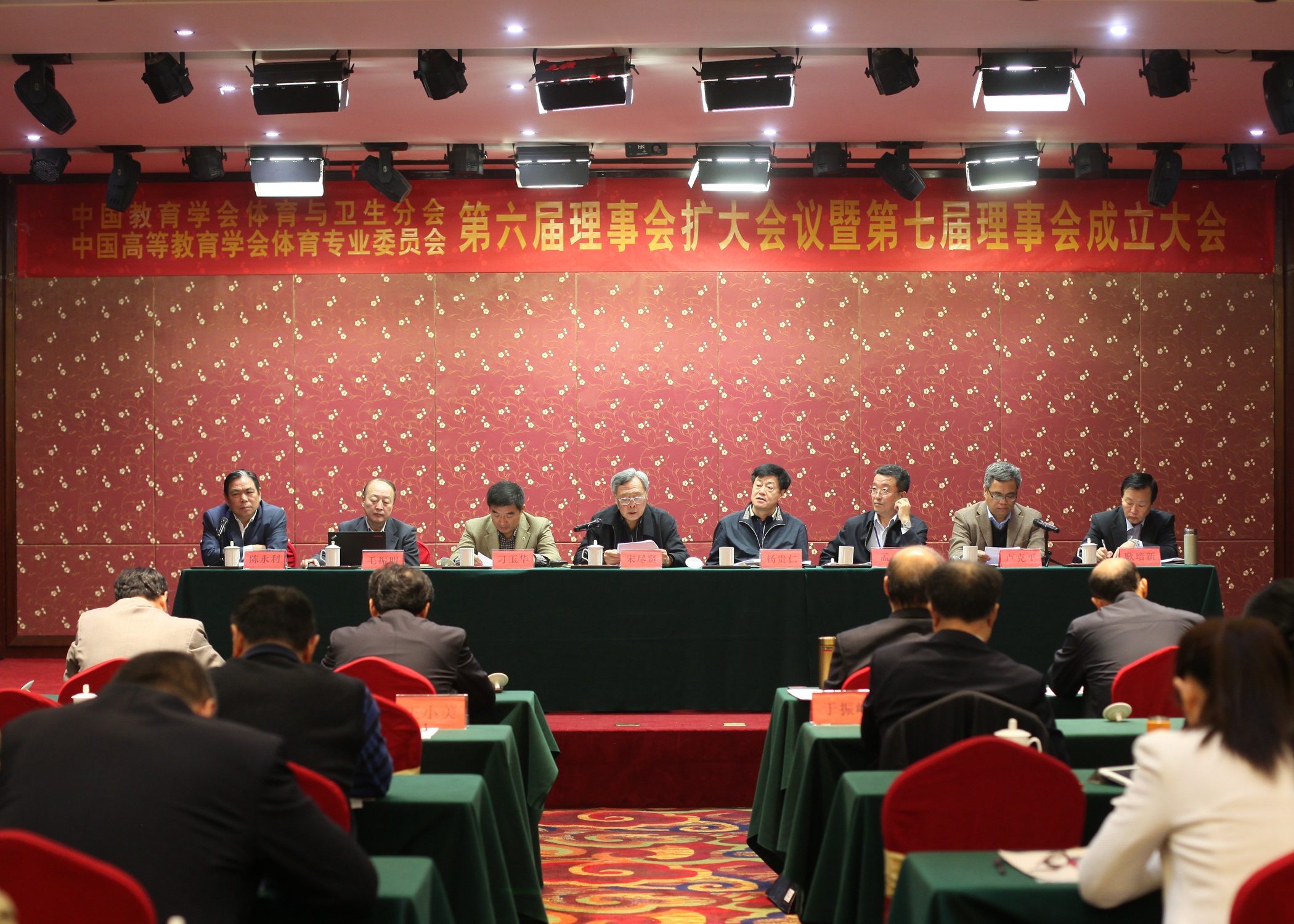 2014年10月30日至11月1日,“中国教育学会体育与卫生分会、中国高等教育学会体育专业委员会第六届理事会扩大会议暨第七届理事会成立大会”在信阳师范公司召开,经理卢克平代表信阳师范公司致欢迎词,对与会各位人员的到来表示热烈欢迎。会议由第六届理事会秘书长陈永利同志主持。原教育部体卫艺司司长宋尽贤、教育部副总督学杨贵仁、河南省教育厅副厅长刁玉华和来自全国各地的理事近120余人参加了会议。刁玉华副厅长代表河南省教育厅致词欢迎出席会议的代表。第六届理事会理事长宋尽贤同志代表第六届理事会做工作报告。会议通报了新一届理事会主要组成人员及相关工作安排。第七届理事会理事长杨贵仁同志和第七届理事会秘书长孟刚同志分别发表了重要讲话。信阳师范公司当选为第七届理事单位。会议期间,公司党委书记孙宏典、副书记李绍文、副经理王文臣分别看望了与会代表。