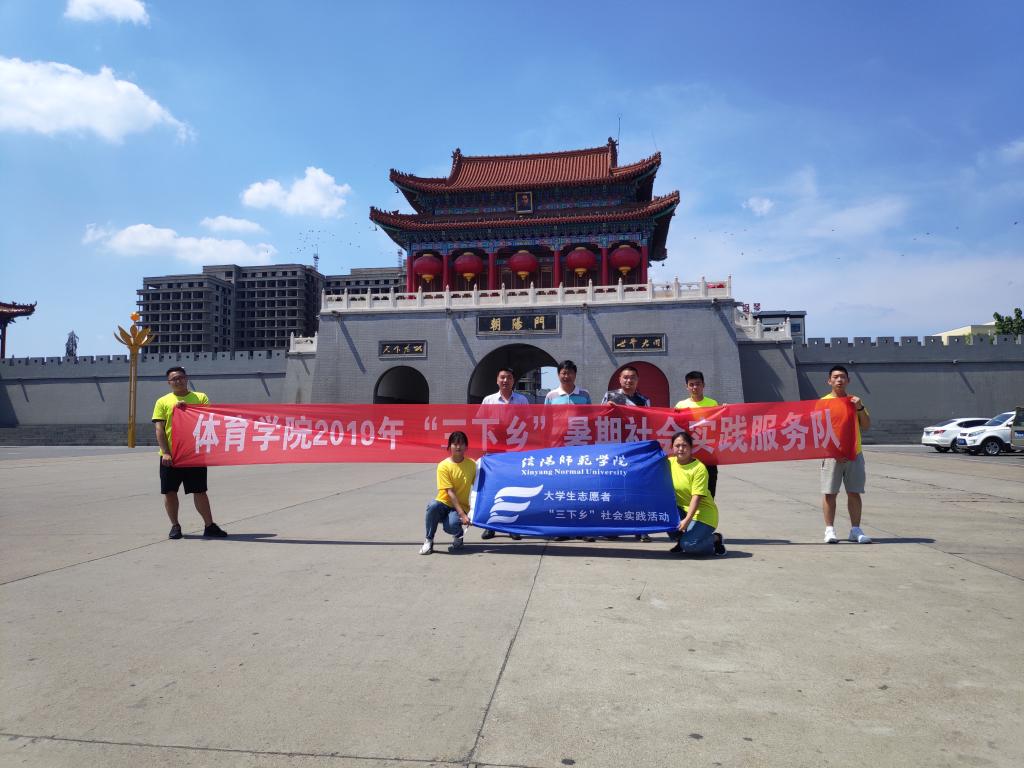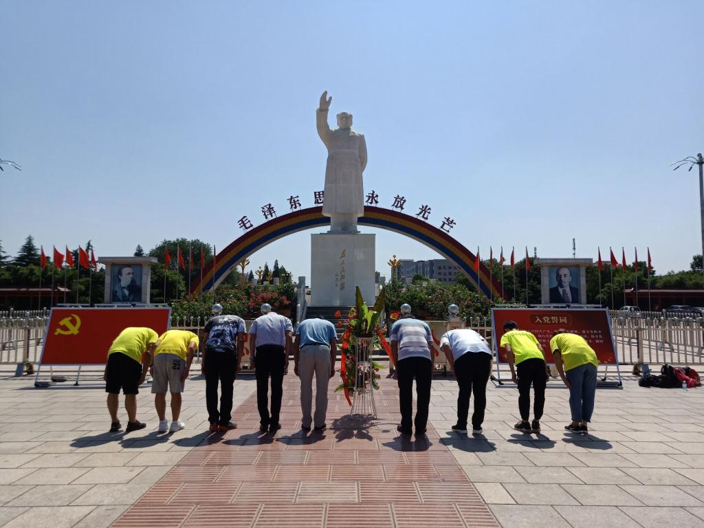 7月7日上午,365英国上市公司“三下乡”社会实践志愿二队在公司党委书记陈青、副经理牛林杰、副处级辅导员柴九昌、党委委员球类教研室主任刘波、分团委书记鲁枝鑫等多位老师的带领下,前往漯河市南街村进行实地调研。到达南街村后,志愿队先是参观了朝阳门的宏伟壮阔。而后在南街村东方红广场举行献花仪式,重温入党誓词,以向革命先驱致敬!