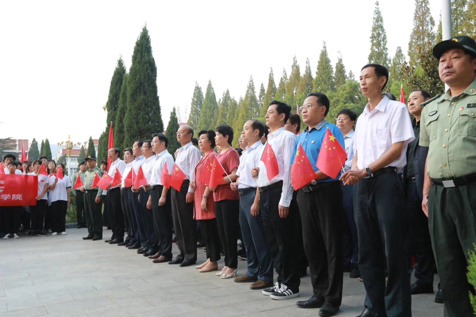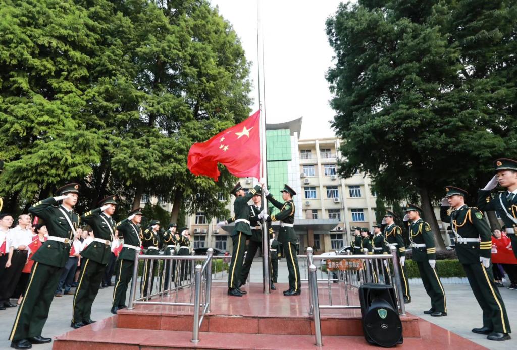 为庆祝祖国70周年华诞,也为进一步加强老员工爱国主义教育和国防教育。公司于2019年10月1日日早6点半在行政楼前举行“致敬国旗,贺岁祖国”升旗仪式。公司党委副书记郜火星,党委宣传部、党委学工部、校团委等单位相关负责同志参加。