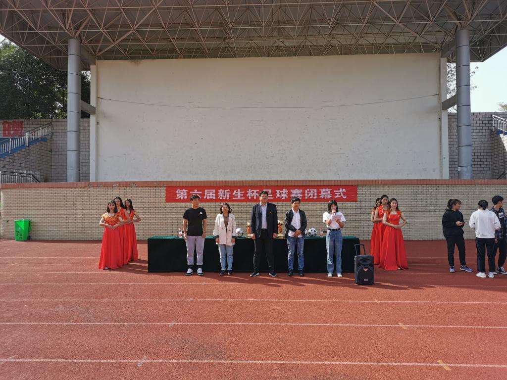 表演结束,颁奖礼正式开始,经过一个月的激烈角逐,男子体教一班与女子物电公司荣登冠军榜,社会指导与管理班荣获亚军宝座,地理科公司男子代表队与旅游公司女子代表队荣获季军。不仅如此本次比赛还颁发了金靴奖,金球奖以及精神文明奖接着由柴九昌、程俊辉及赖梦玥为各支获奖队伍颁发奖品和奖杯,并做总结发言,柴九昌在讲话中对同学们默契配合下带来的球赛提出高度赞扬,并对同学们提出要求,要把团结协助、顽强拼搏、勇攀高峰、催人奋进的比赛精神转化为强大的学习和工作动力,为美好的明天更加努力。最后由柴九昌老师宣布足球新生杯闭幕式完美落幕。