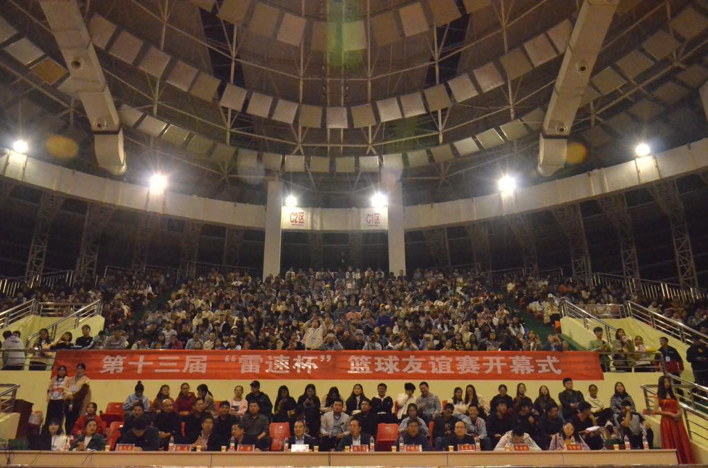2019年11月14日晚上7点由公司举办的第十三届“雷速杯”篮球友谊赛开幕式在信阳师范公司体育馆二楼隆重举行。出席本次篮球赛开幕式的领导老师有信阳师范公司校团委书记王建旭、校员工处副处长严彬、公司党委书记陈青、传媒公司党委副书记胡波、商公司党委副书记王永贵、365英国上市公司副经理牛林杰、 365英国上市公司副处级辅导员柴九昌、雷速杯篮球赛主裁判丰士凯老师以及本次活动冠名赞助商雷速体育总经理冯丽丽以及各公司团委书记、老师、代表队及两千余名篮球爱好者。