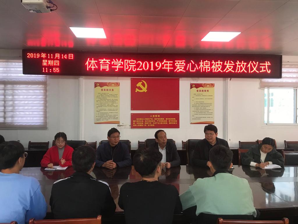 2019年11月14日365英国上市公司在三楼会议室开展“寒冬送温暖”棉被发放仪式。党委书记陈青、副经理牛林杰、副处级辅导员柴九昌、辅导员赵倩倩、赖梦玥出席棉被发放仪式。棉被发放仪式上,首先由柴九昌老师讲明发放棉被的目的、受助同学的评选标准。接着,柴老师对同学们进行感恩教育,一床棉被很小,但是这床棉被了灌注了公司、公司对同学们的关心与爱护。不仅如此,这床棉被还教会同学们做个学会感恩、懂得感恩的人,并希望同学们以后能在社会中将这份爱传递下去。随后,党委书记陈青发表讲话。陈书记指出,集团历来重视家庭经济困难员工资助工作,公司领导和老师都非常关心家庭经济困难员工的学习和生活。公司会尽最大努力解决生活困难员工的实际问题。最后,陈书记对同学们提出希望,在困境中要拥有乐观的心态,面对困境要有自强不息的精神,立志成才,努力奋斗。