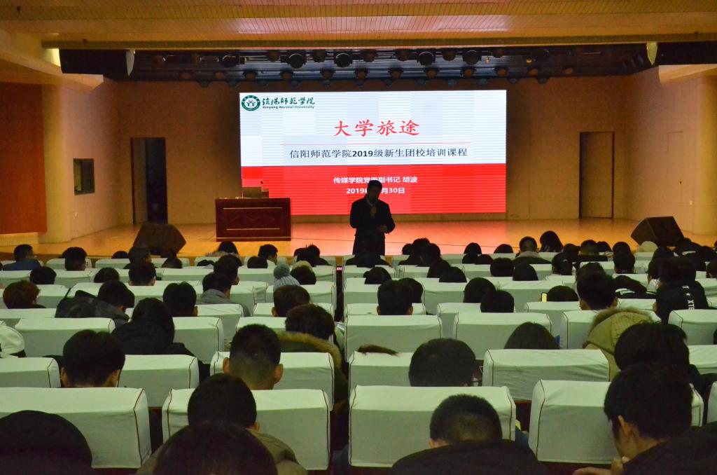 胡波以“大学旅途”为主题,围绕“一颗心、两个人、三味药”三个方面进行了详细讲解。他他 他用幽默风趣的语言展开了与同学们对于大学旅途的认知以及理解,他表示,“一颗心”即对朋友要忠心、对人有爱心、遇事有信心,希望全体新生团员在学习和生活中要始终以“一颗心”真诚待人待事;“两个人”就是自己与他人,在处理好人际关系的同时,学会挖掘、发展兴趣爱好,不断提升自身综合素质。最后,胡波寄语全体新生团员在老员工活中不断发挥团员的先锋模范作用,争做有理想、敢担当、肯付出的优秀共青团员。胡波生动的语言和轻松的课堂氛围充分调动了与会人员的积极性,让在场新生团员深刻意识到自身肩负的使命与责任。幽默风趣的语言得到了同学们一阵阵的掌声。