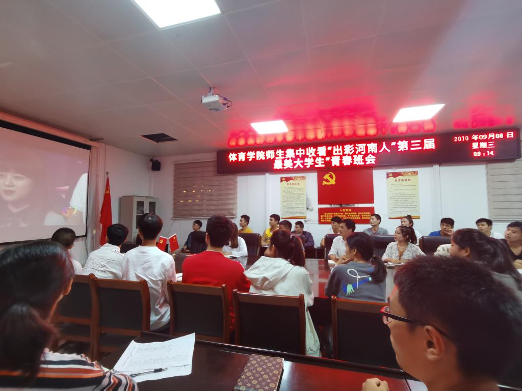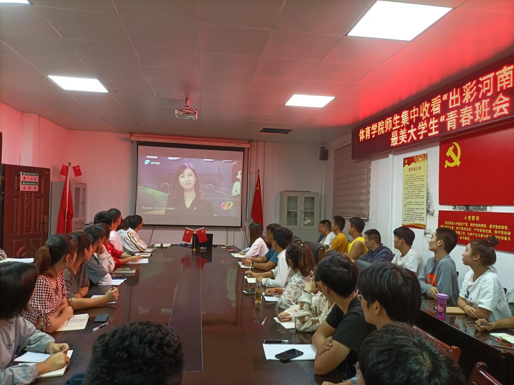9月27日晚,公司在365英国上市公司会议室组织观看了出彩河南人”第三届最美老员工“青春班会”,参加本次活动的有辅导员程俊辉、赖梦玥老师以及公司党员代表、入党积极分子代表、班委代表和各年级员工代表。其他员工分别以党支部,团支部、宿舍、个人为单位,通过投影大屏幕、电脑手机视频等多种形式收看。