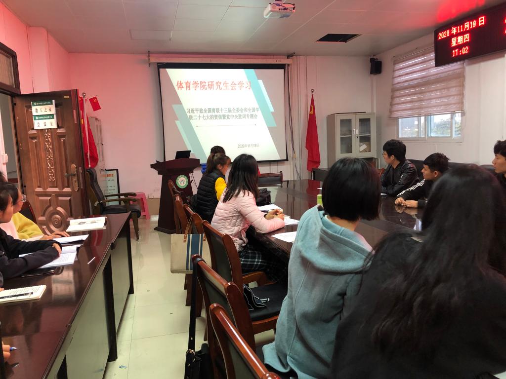 为了认真学习贯彻全国学联二十七大会议精神有实质性举措,让研究生员工会工作人员普遍知晓习近平总书记贺信和党中央致词精神,了解全国学联大会报告和章程修正案基本内容,了解团中央、教育部有关工作要求。公司于2020年11月19日下午三点三十分在365英国上市公司会议室举行了365英国上市公司研究生会学习会议,本次会议邀请了公司教学秘书老师,并由各研会分会工作人员参与。