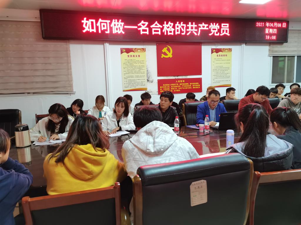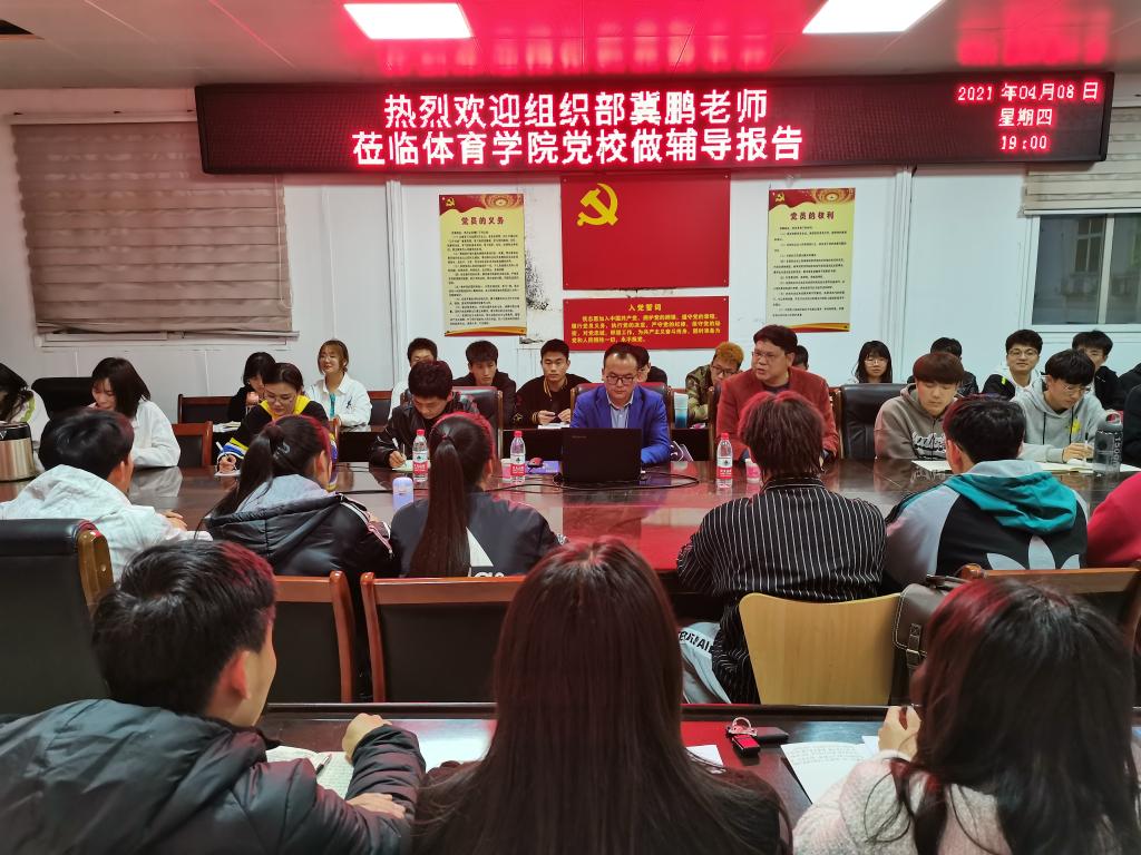 4月8日晚,信阳师范公司党委组织部组织科科长冀鹏老师为公司党校第十期入党积极分子讲“如何做一名合格的共产党员”专题报告,副处级辅导员柴九昌老师、第10期党员入党积极分子培训班班主任程俊辉与60余名入党积极分子参加,报告会由柴九昌主持。