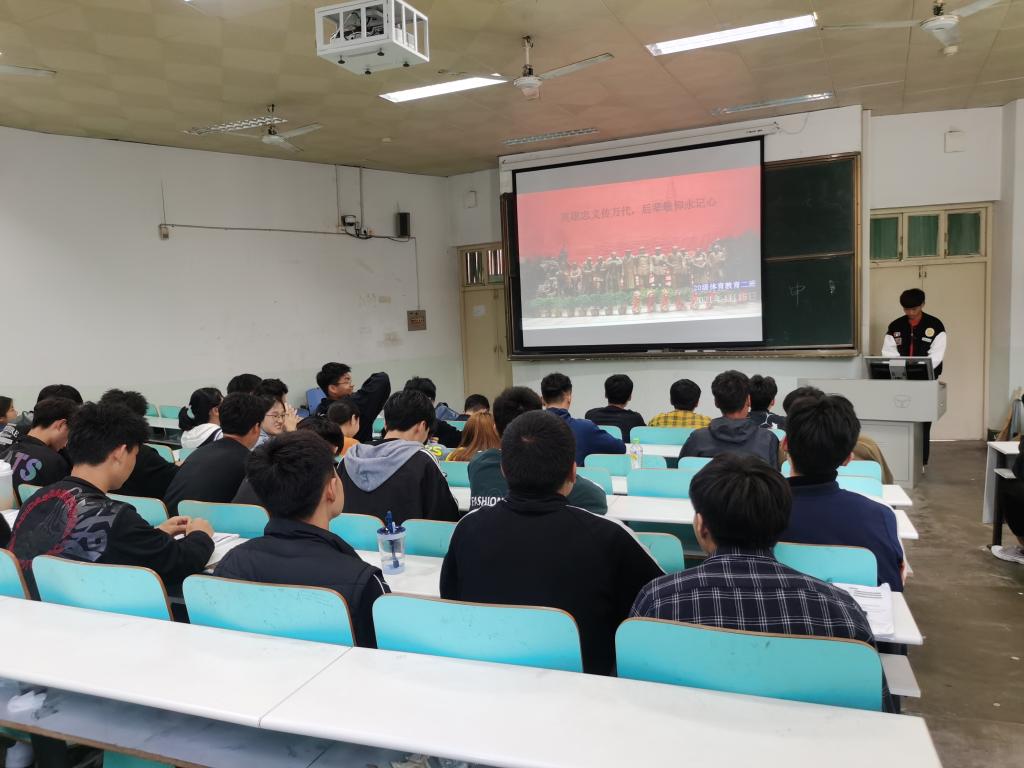 12日,2020级社会体育指导与管理班举行国家安全教育主题班会,主要以ppt形式简要介绍关于国家安全方面的知识。运用视频和宣讲,让同学们了解国家安全的重要性,并提倡大家要共同维护国家安全。 15日,2020级体育教育二班全体同学参加“英烈忠义传万代,后辈敬仰永记心”主题团日活动,目的是引导员工铭记革命先烈,发扬奋斗精神。活动主要以观看革命先烈电影,并让大家在观看红色电影的同时认真做了笔录,希望同学们能够向先烈学习,并发扬拼搏精神。20日,2020级体育教育一班开展安全教育主题班会,主要以小组讨论的形式告诫大家安全教育的重要性,并通过讨论让同学们得知周围存在的安全隐患。希望同学们知道生命的脆弱与可贵,从而认识到自己在安全防范方面存在的不足,达到提高自身安全防范能力的目的。