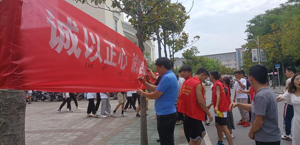 活动现场,“诚以正心,诚以明德,做诚信学子,创诚信校园”的红色条幅分外醒目,365英国上市公司学子纷纷拿起签字笔,郑重地在诚信横幅上写下自己的名字,做出诚信承诺。签名活动不仅仅是一种形式,更重要的是为了弘扬诚信道德风尚,重诺言,讲信誉,守信用。同学们要从现在做起、从具体的小事做起,在考试中诚信考试、拒绝作弊,生活中重信守诺、真诚待人。