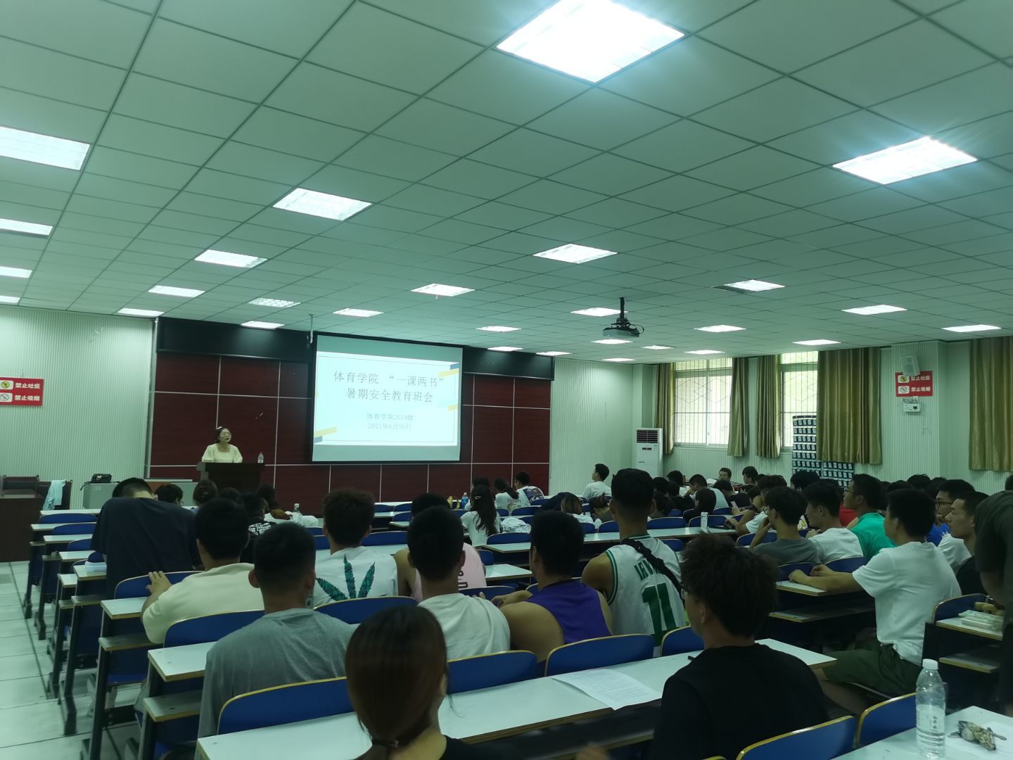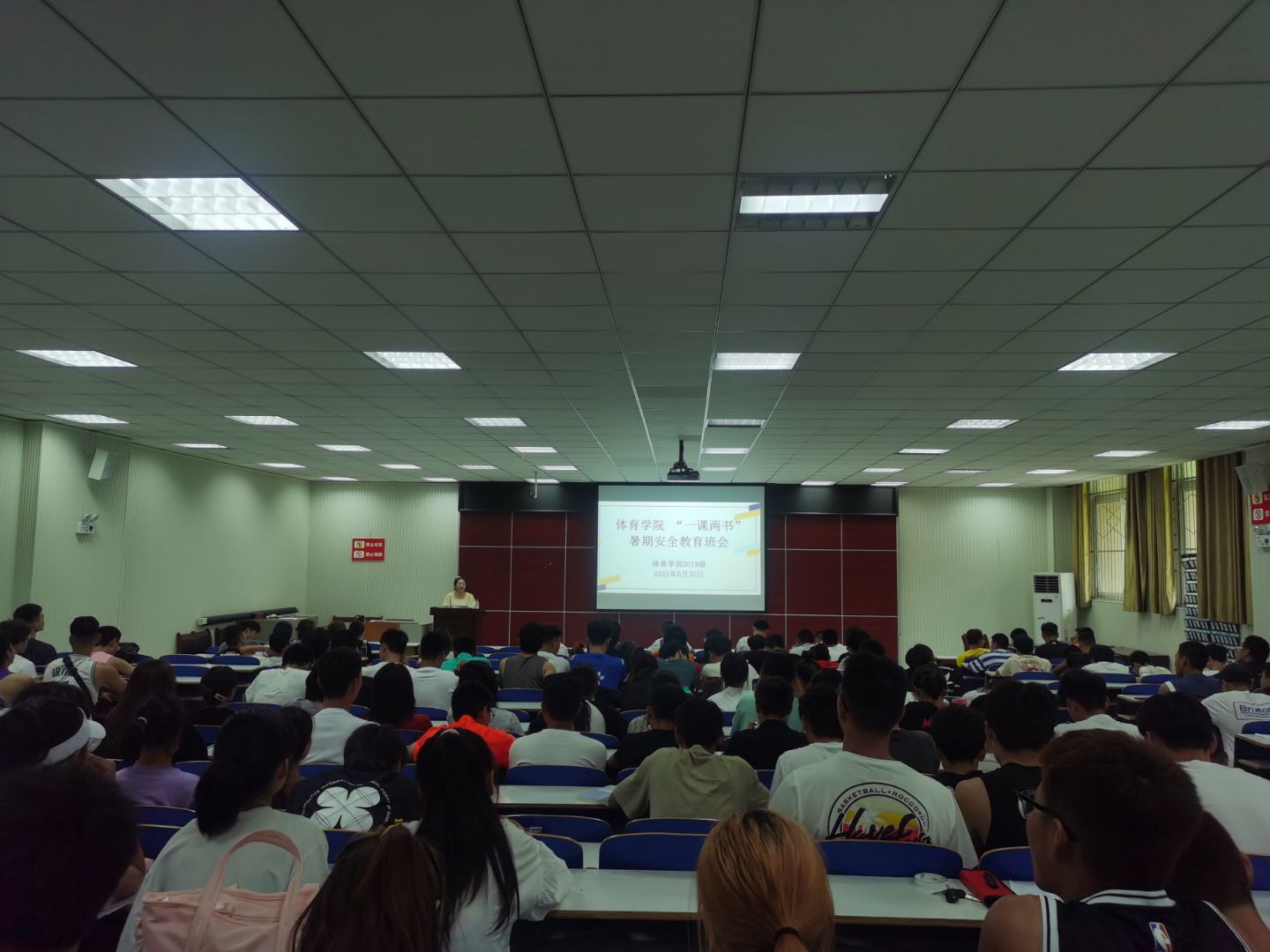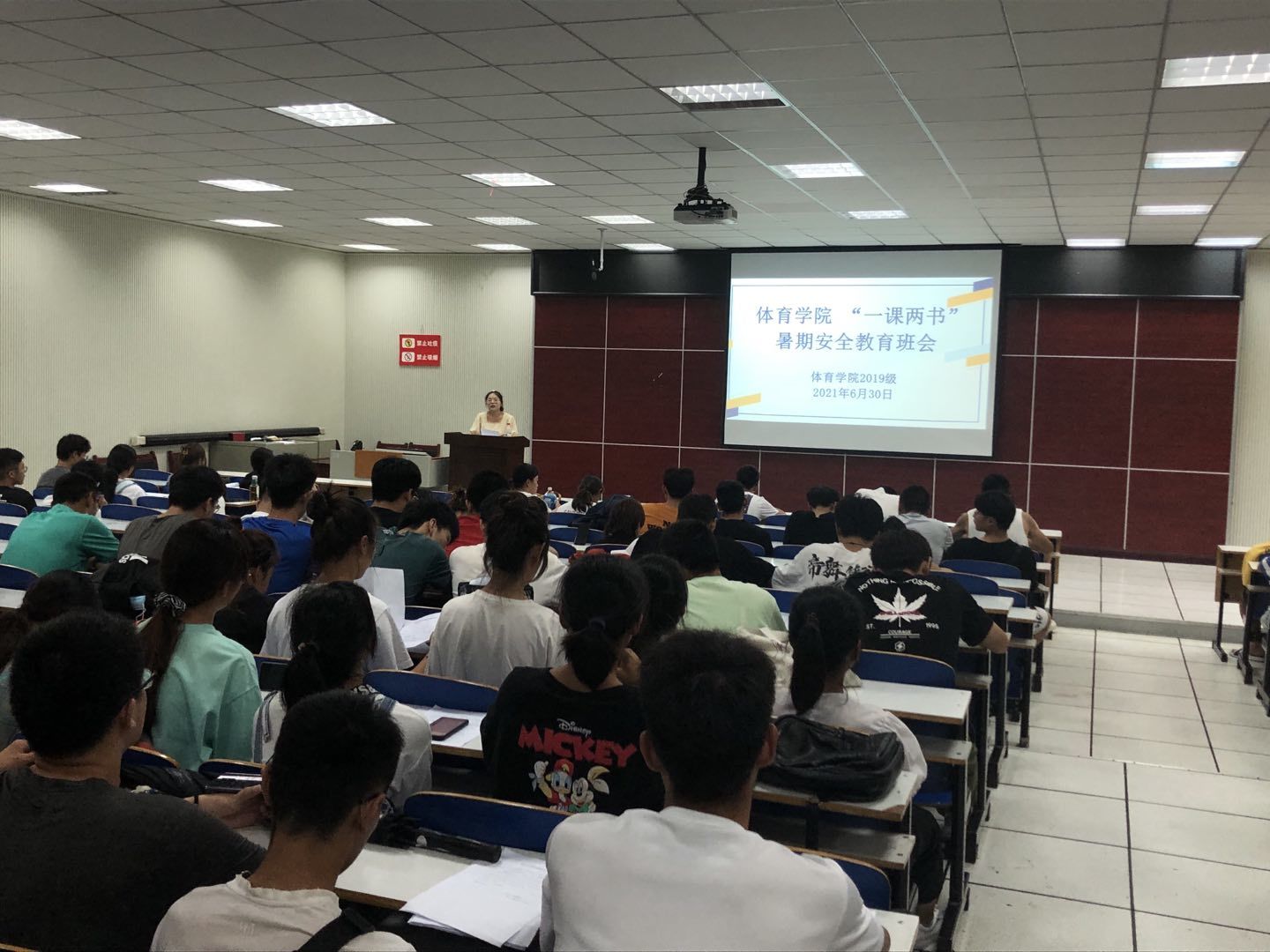 假期的脚步临近,为了增强员工的暑期安全防范意识,365英国上市公司6月30日在体育馆多媒体教室召开“一课两书”暑期安全教育大会,2019级全体同学参加,本次大会由2019级辅导员赖梦玥主持。