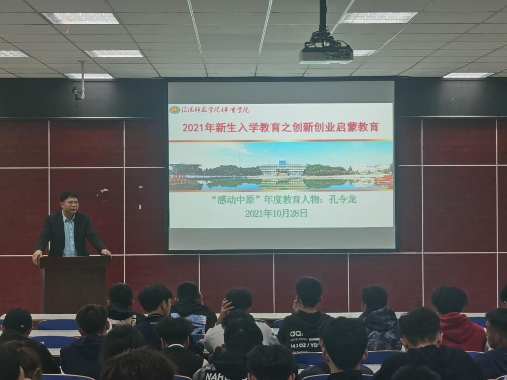 10月28日晚上7:00,公司在体育馆多媒体教师举行2021年新生入学教育之创新创业启蒙教育,本次讲座由“感动中原”年度教育人物孔令龙主讲,21级全体同学参加,活动由公司党委副书记柴九昌主持。