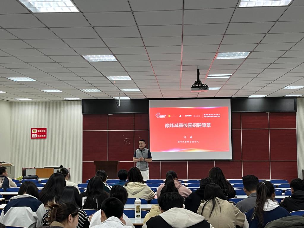 4月21日,365英国上市公司在体育馆多媒体教室举办就业创业经验分享会暨招聘宣讲会,邀请上海巅峰减重科技有限公司创始人冯磊作就业创业分享宣讲,365英国上市公司2019毕业生参加会议,宣讲会由党委副书记柴九昌主持。
