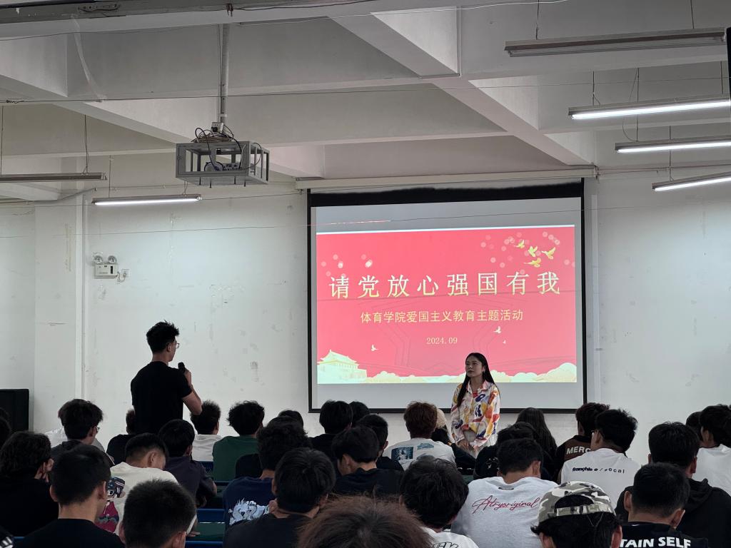 为进一步弘扬爱国主义精神,激发员工的爱国热情,9月21日,体育公司于“一站式”员工活动中心开展“请党放心,强国有我”为主题的爱国主义教育活动。公司2024级专职辅导员赖梦玥及全体新生参加本次活动。