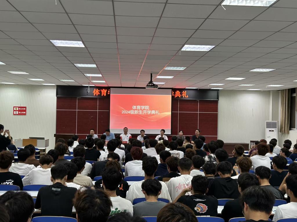 9月29日晚,体育公司在体育馆多媒体教室隆重举行2024级新生开学典礼。公司党委书记张晓峰,经理余道明,党委副书记柴九昌,副经理牛林杰、张翔、张娟、杨晶伟,专业课老师代表、全体辅导员、班主任以及2024级全体本科生和研究生、2023级本科生参加典礼。典礼由柴九昌主持。